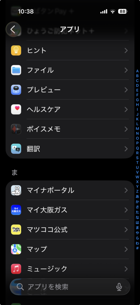 - 画面をスクロールして**「アプリ」をタップします**。