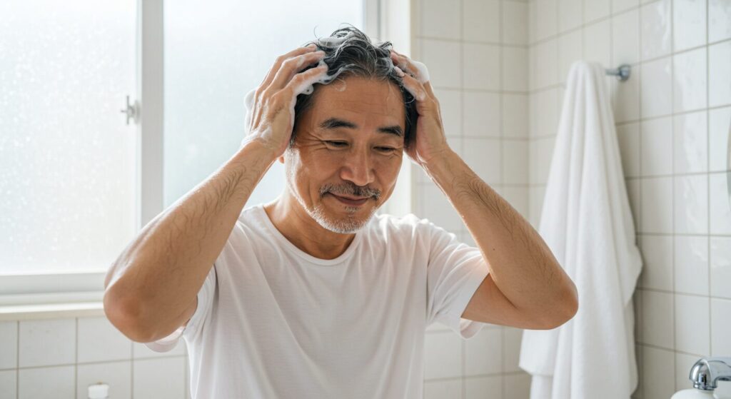 - 朝:軽くシャンプー(※低刺激のものを使用)