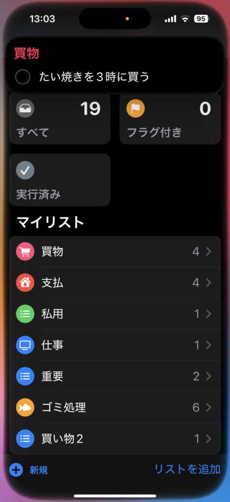 リマインダー(=やることリスト)は、やること・忘れたくないことを簡単にメモして通知してくれる機能です。