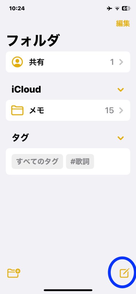 - メモアプリを開く