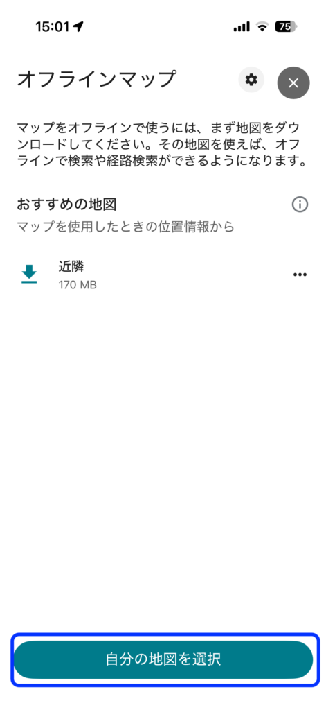 👉 あらかじめ地図データを保存しておくことで、圏外でも地図が見られる機能です。